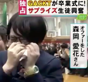GACKTさんが演奏を始めようとすると、すでに泣いてる生徒が数人。GACKTさんは「泣くのは早い!」と会場は笑いに包まれました。