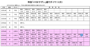 すでに南海電鉄のホームページでは、HYDEサザンの今年12月の運行ダイヤルがアップされています。