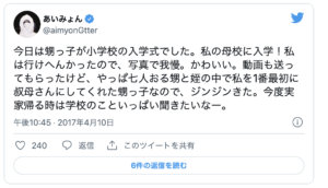 あいみょんさんは姉の子供(甥っ子・姪っ子)とのことをよくツイッターなどで投稿していましたね!