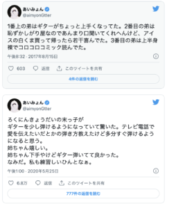 そして歳の離れた弟たちは、あいみょんさんと同じく音楽の影響を受けてギターを始めてるそうです。