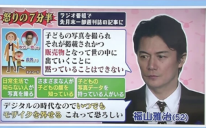 福山雅治さんは、自分の子供が通う幼稚園近辺で知らない人がカメラを持って写真を撮っていること、そして撮った子供の写真をモザイクをかけたからといって週刊誌に載せてることに対して苦言を呈したのです。