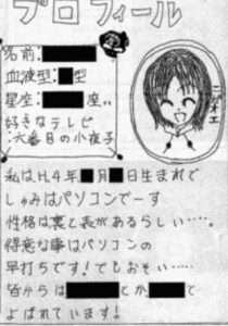 | 趣味 | パソコン。オカルト。アニメ。 |