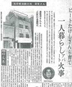 浅草にある深見さんのアパートから火が出て、お酒に酔っていた深見さんは逃げ遅れ、玄関先でそのまま亡くなりました。