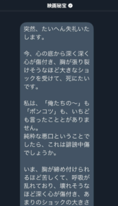 また、映画秘宝は自社の公式アカウントから正式にことの経緯と謝罪文を出しています。