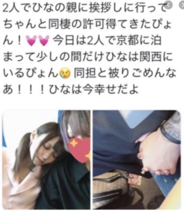 毒歩と寄り添って眠っているようなツーショットを披露し、二人で同棲することなどを報告したのです。