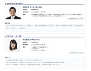 2人の不倫報道が出る手前、NHK甲府局のホームページから早川美奈アナと斉藤孝信アナのプロフィールが消えました。
